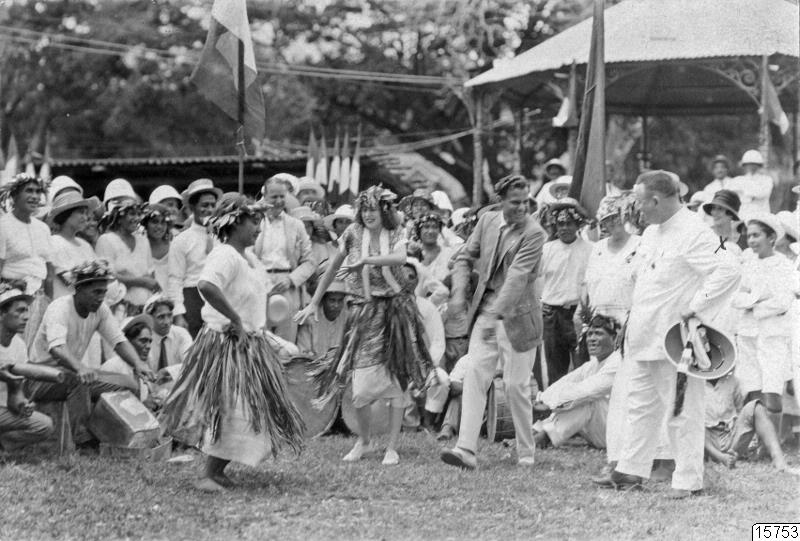 Foto i löjnant Yngve Olssons kvarlåtenskap. Denne hade vistats på Tahiti. Foto: Ingen uppgift om fotograf eller datum. Erhållen: Gåva till museet genom systern fröken Ingegärd Olsson 1966-03-22. (katalogkort).