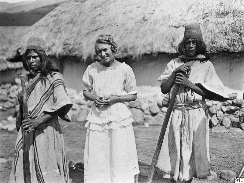 - Fru Ester Bolinder mellan två män. Byn Pauruba.