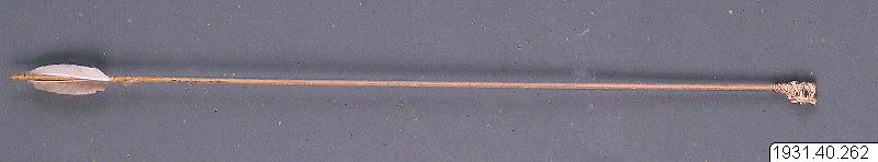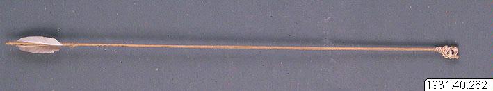 Pil med korsformig spets, avsedd för pilbåge, som användes av barn. Gjord av två pinnar, fastbundna i kors.