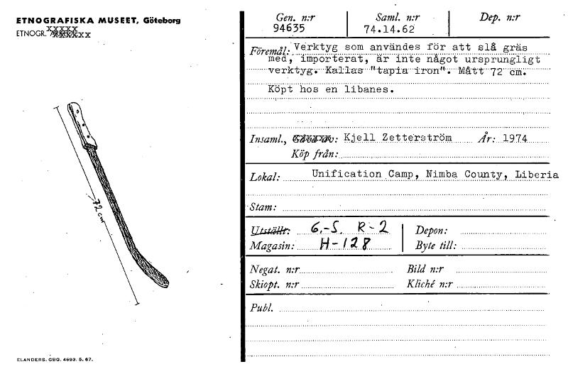 Verktyg som användes för att slå gräs med, importerat, är inte något ursprungligt verktyg. kallas "tapia iron". Mått 72 cm.