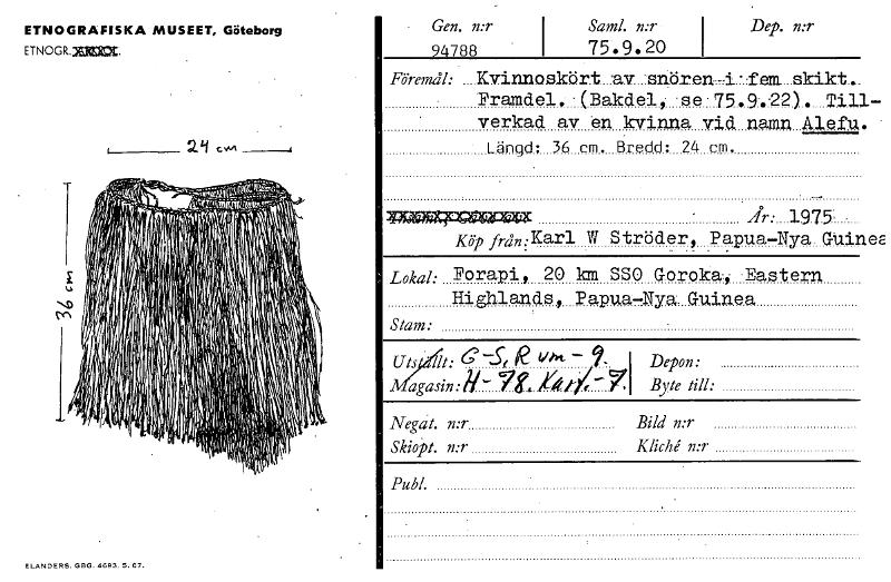 - Katalogkort ur Världskulturmuseets arkiv.