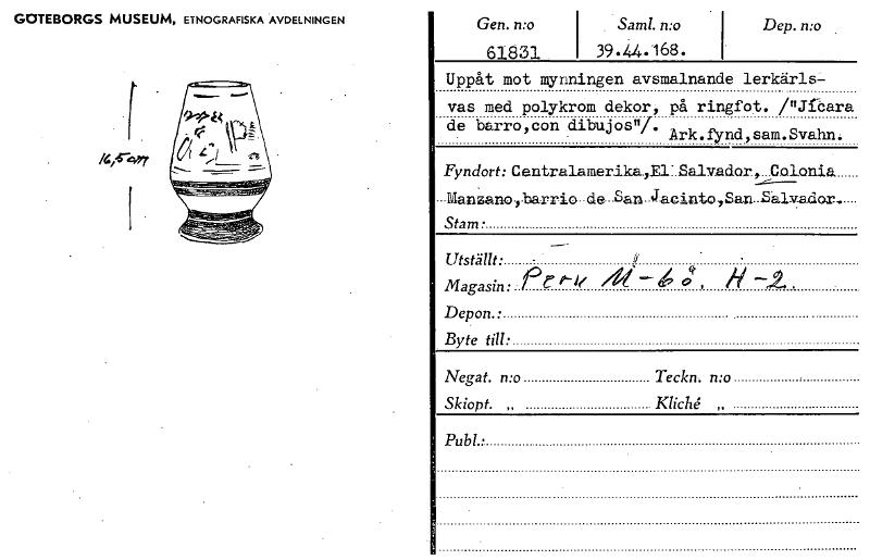 - Katalogkort ur Världskulturmuseets arkiv.