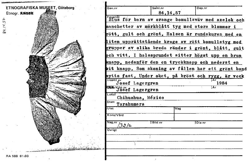 - Katalogkort ur Världskulturmuseets arkiv.