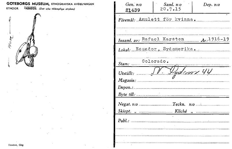 - Katalogkort ur Världskulturmuseets arkiv.