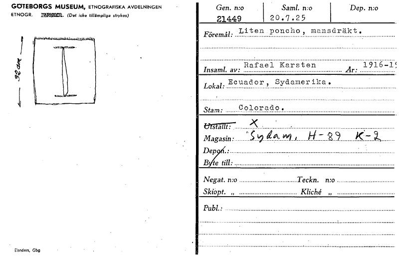 - Katalogkort ur Världskulturmuseets arkiv.