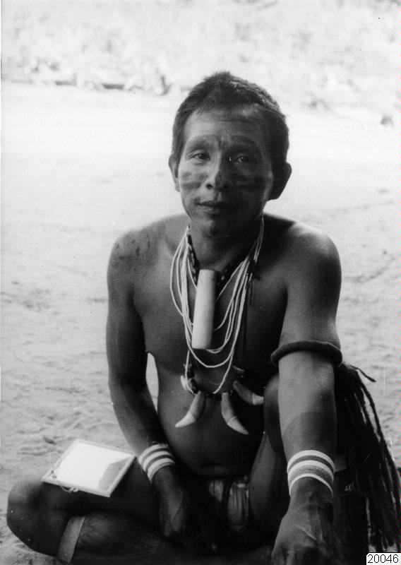- Ignacio, hövdingen (uhu) pryder sig inför en religiös dansfest. Prydnaden på överarmen är tillverkad av aphår (gake hoa).