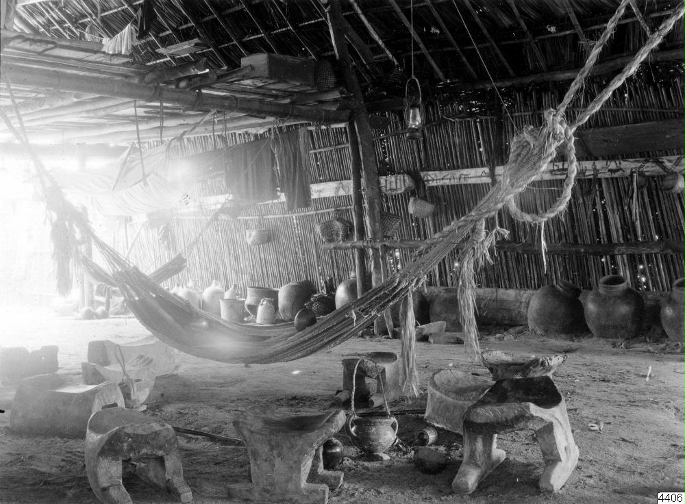 - Det inre av en församlingshydda i byn Kaynora kort efter en pubertetsfest.