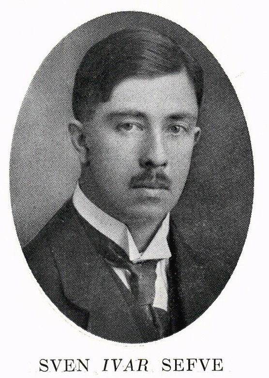 - Ivar Sefve, rekotor och paleontolog, född 1886-11-22, Norrköping, son till folkskolelärare Vilhelm Sefve och Hedvig Pettersson. Gifte sig 1914 med Signe Hagman. De fick barnen Sven (1916), Inga (1918), Bengt (1920) och Märta (1922). Han läste i Uppsala och var där verksam vid zoot. lab. Han gjorde resor till Argentina, Chile , Bolivia och Peru (1910-11), Bolivia (1920-21), Tyskland, Österrike, Schweiz, Italien och Frankrike (1923, 1926, 1930) och England (1932). Han skrev bland annat Die fossilen Pferde Südamerikas (1912), Lärobok i biologi (1919), Bolivianska strövtåg (1923), Utdöda djur (1924), Utvecklingsläran (1926), Sydamerika (1927), Liv och materia (1929) och Människan och hennes föregångare (1944). (Vem är vem, Götalandsdelen utom Skåne 1948). Han var även en högerpolitisk rikdsdagsledamot 1934-36 och från 1943. Han dog 1953-07-05 (wikipedia, 2012-01-14, Vem är det, Svensk biografisk handbok, 1943).