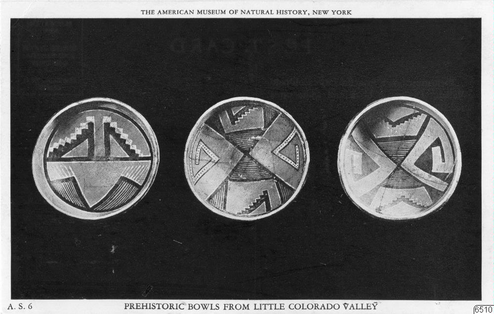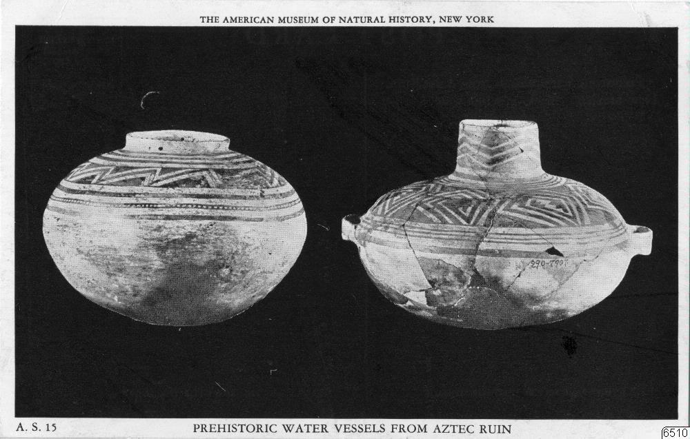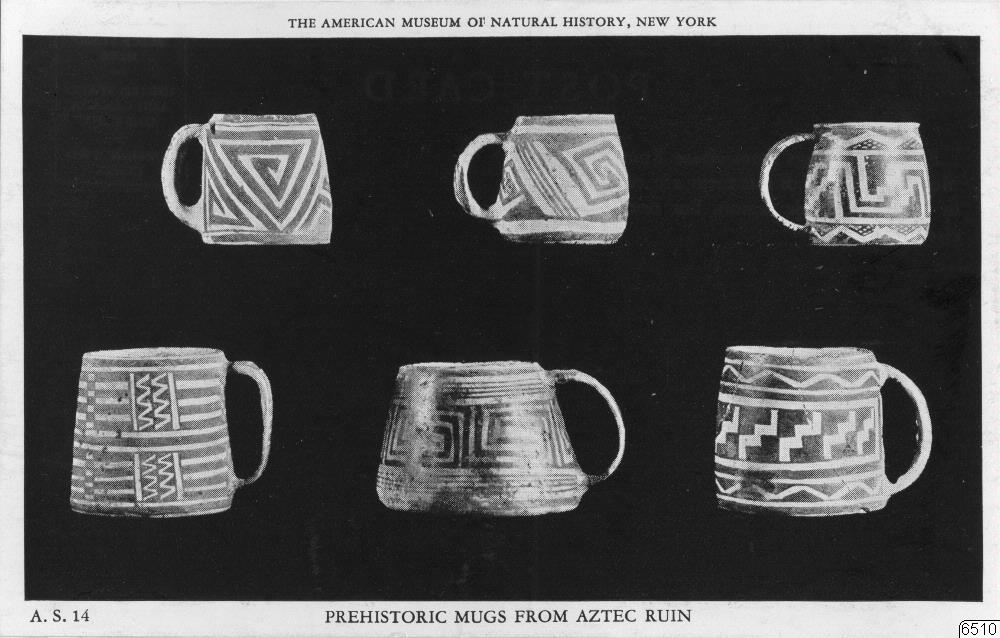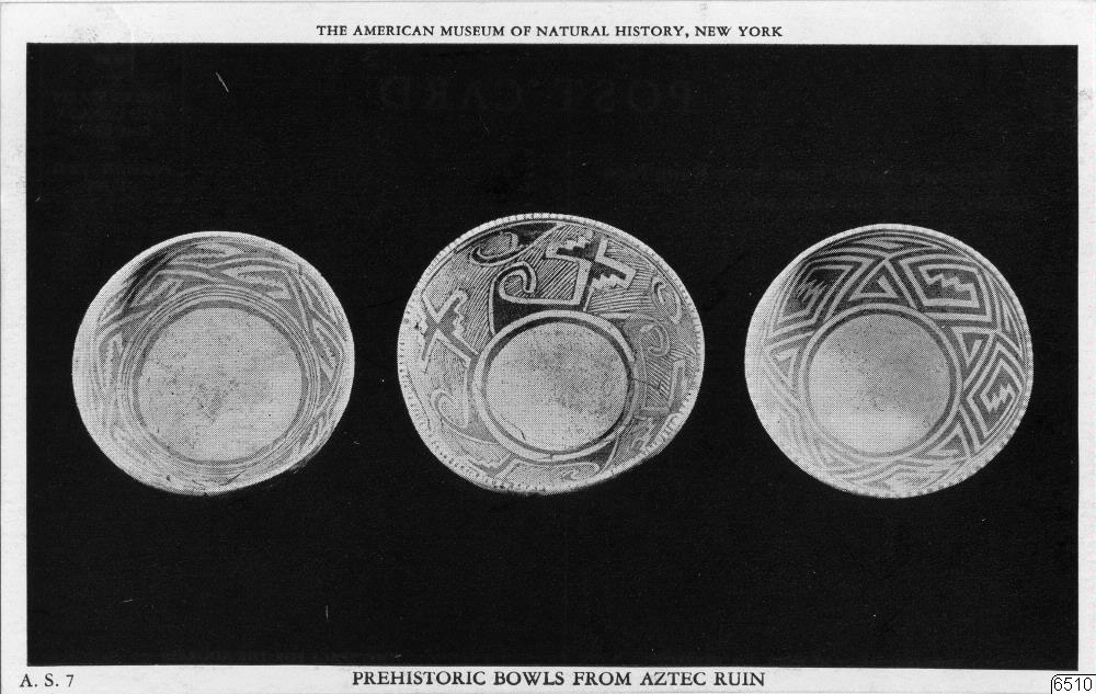 Motiv: Arkeologisk keramik från Aztec Ruin och Little Colorado Vally. Tillhör Amer. Museum of Nat.History, New York. 5 vykort.
