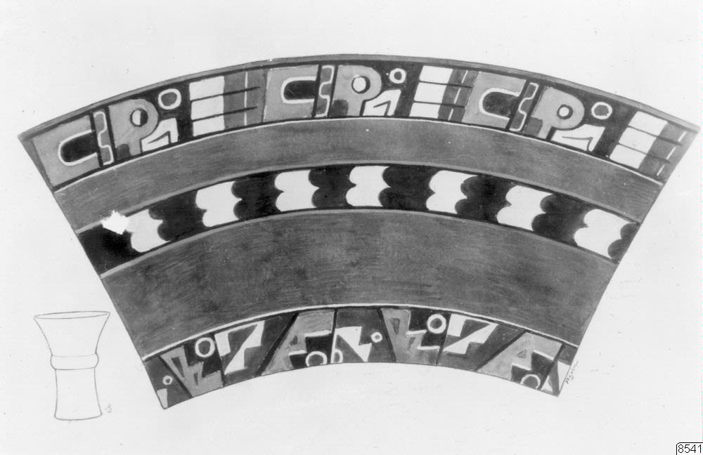 Motiv: Bägare med målad dekor. Kondorfris upptill längs randen. Kat.nr. 1928.03.0001.