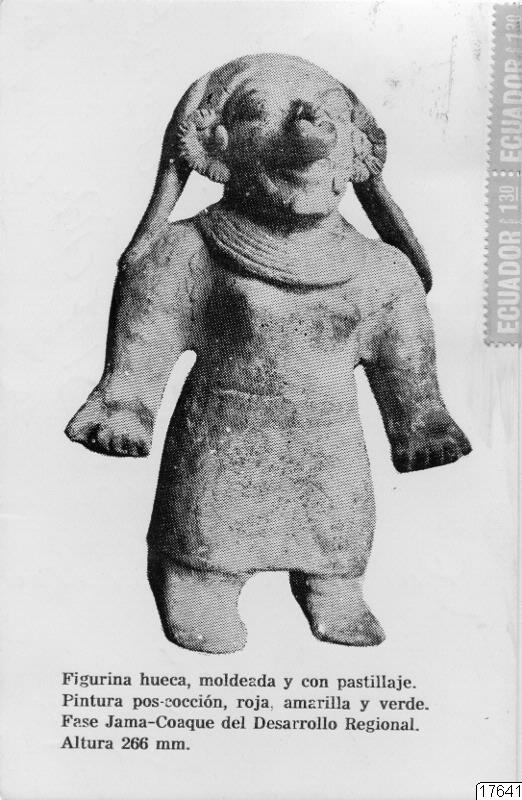Motiv: Arkeologisk keramikfigur, 266 mm hög, från fasen Jama-Coaque. Se vidare text på vykortet.