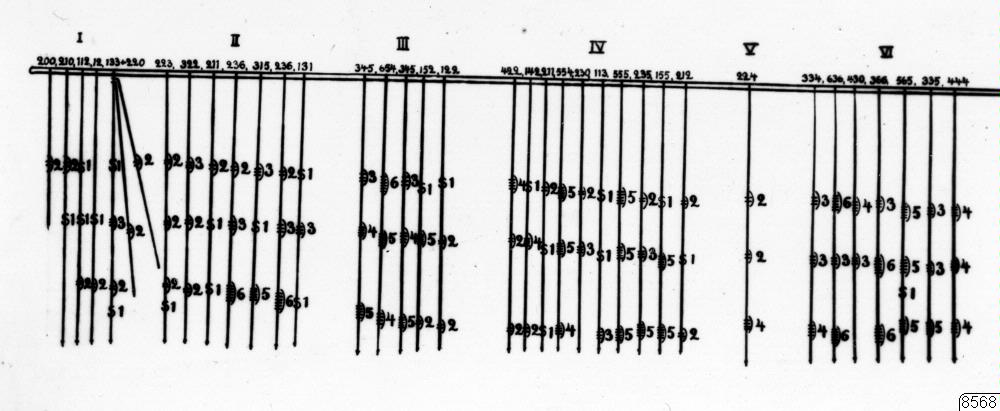 Motiv: De första grupperna på den av Nordenskiöld som quipu 2 publicerade quipun Inv.No. 003319 i Etnografiska Museet i München.