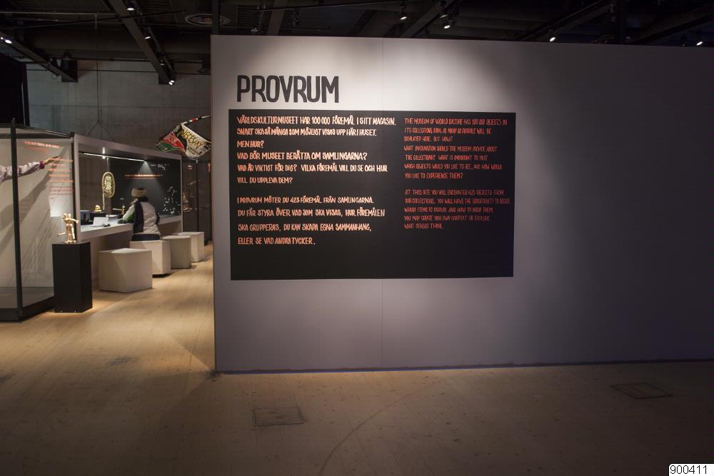 Provrum är ett dialoggalleri där mötet mellan besökaren och föremålet står i fokus. Besökaren får på ett lekfullt sätt närma sig föremålen och påverka hur de visas samt skapa egna sammanhang, eller se vad andra tycker.
