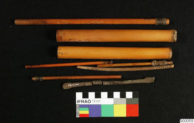Saml. 70.19.1 - 64, arkeologiska föremål från Niño Korin, nära Villa Perez-Charazani, departamento La Paz, Bolivia, har insamlats av S.Henry Wassén och betalats med 1.000 U.S. dollars= kr. 5.189.50 i augusti 1970.