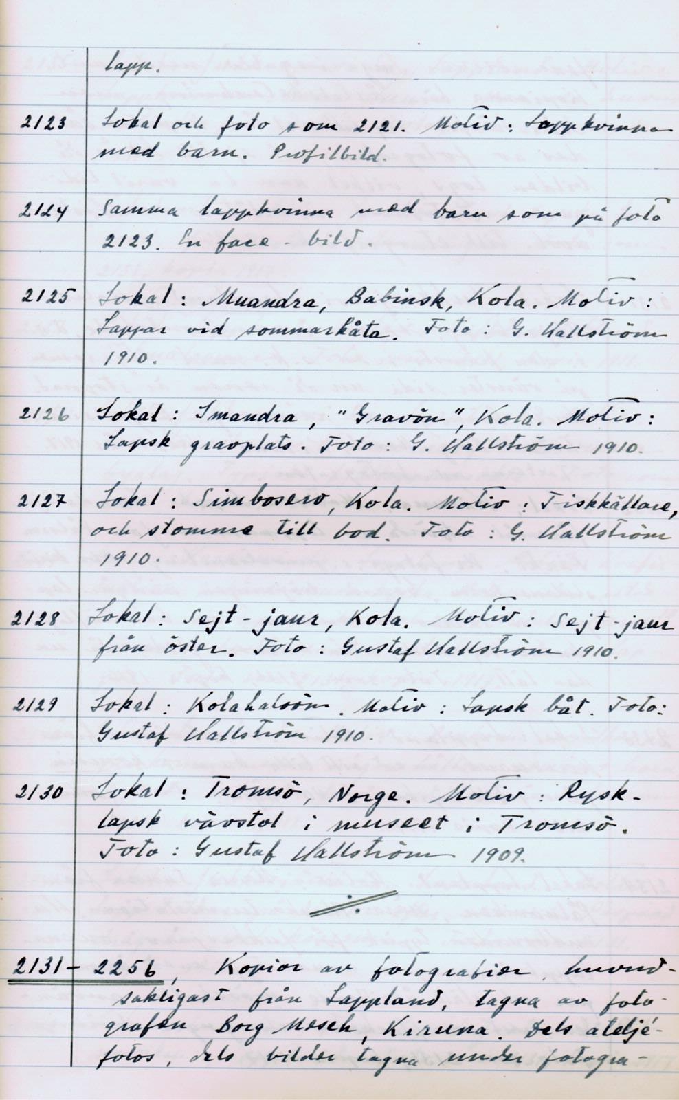 - Boksida ur Bildarkivet, bok 2. Handskriven dokumentation av bilder.