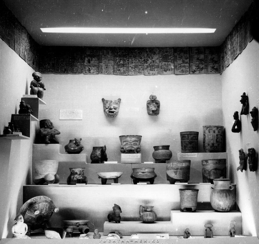 Mesoamerican Trade Ware" av Anna O. Shepard (Carnegie Inst. of Wash., Publ. 573) Wash.,D.C.:1948, p.22, med bl. a. följande, som väl stämmer in på detta föremål (jfr. Shepard's fig 14 c) :" The most common animal, the jaguar, has certain relatively constant features, particularly a rattle head, bared teeth, and rounded ears, often incised and punctate. Frequently a line extends from the corner of the eye back across the cheek. The head is often moldmade. A few have a lolling tongue and the head is turned." ------Enligt originaluppgift i samlarens katalog "vaso con figura". Kärlet hemtaget till Sverige med en resenär, varvid det gätt sönder och fått lagas på museet i april 1960.