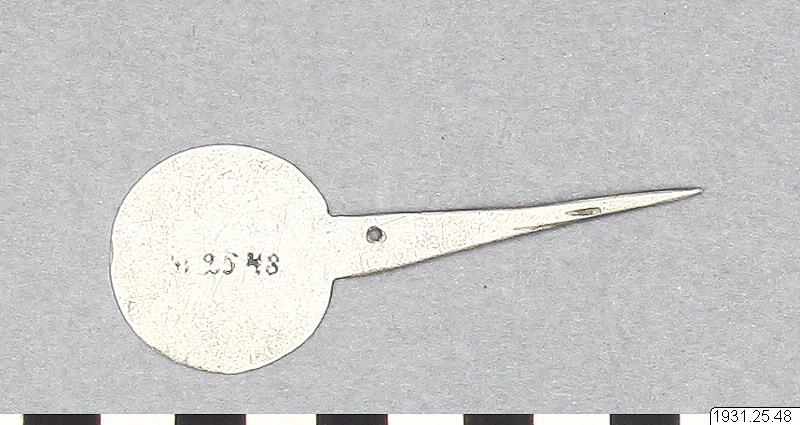 Topu en argent que les femmes Chipaya portent dans les chevaux (sic). (katalogkort/originalbeskrivning)