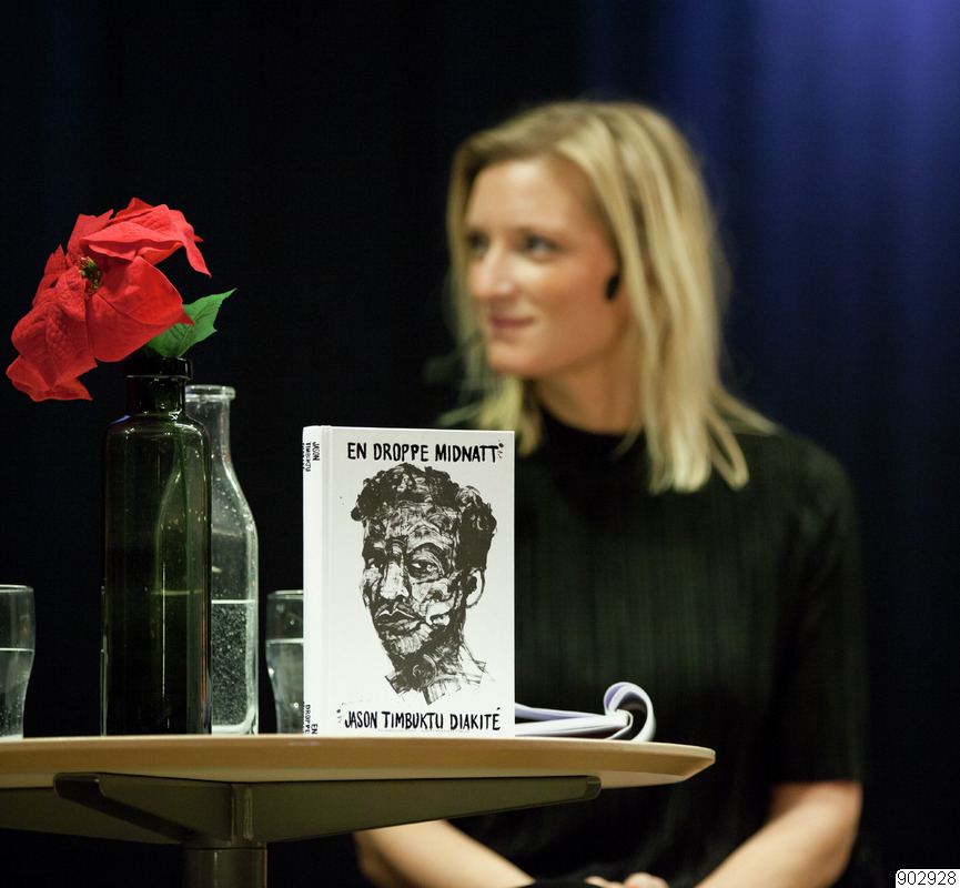 Jason ”Timbuktu” Diakité i samtal med Lovisa Fhager Havdelin om sin nya bok En droppe midnatt på Världskulturmuseet i Göteborg 25.01.2017. Kvällen arrangerades av Anna Lindh-stiftelsens nätverk i Sverige och Teskedsorden