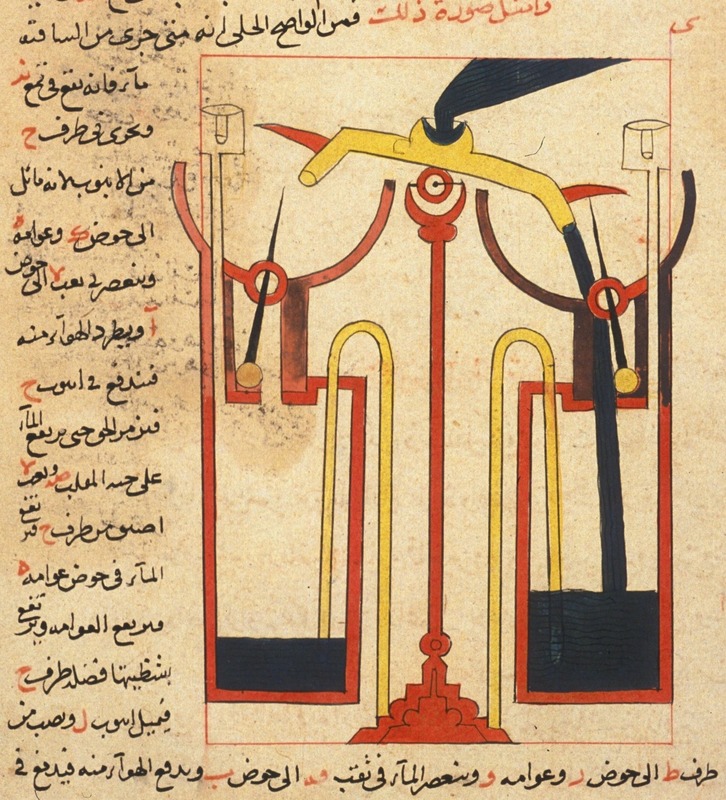 Skiss över ett vetenskapligt instrument på arabiska. Dateringen är okänd.