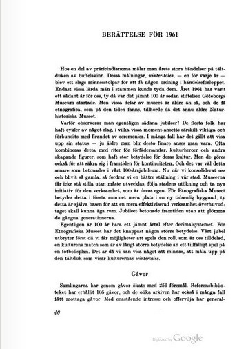 Årsberättelse 1961, Årstryck 1959-62, Etnografiska museet, Göteborg :: 8262545