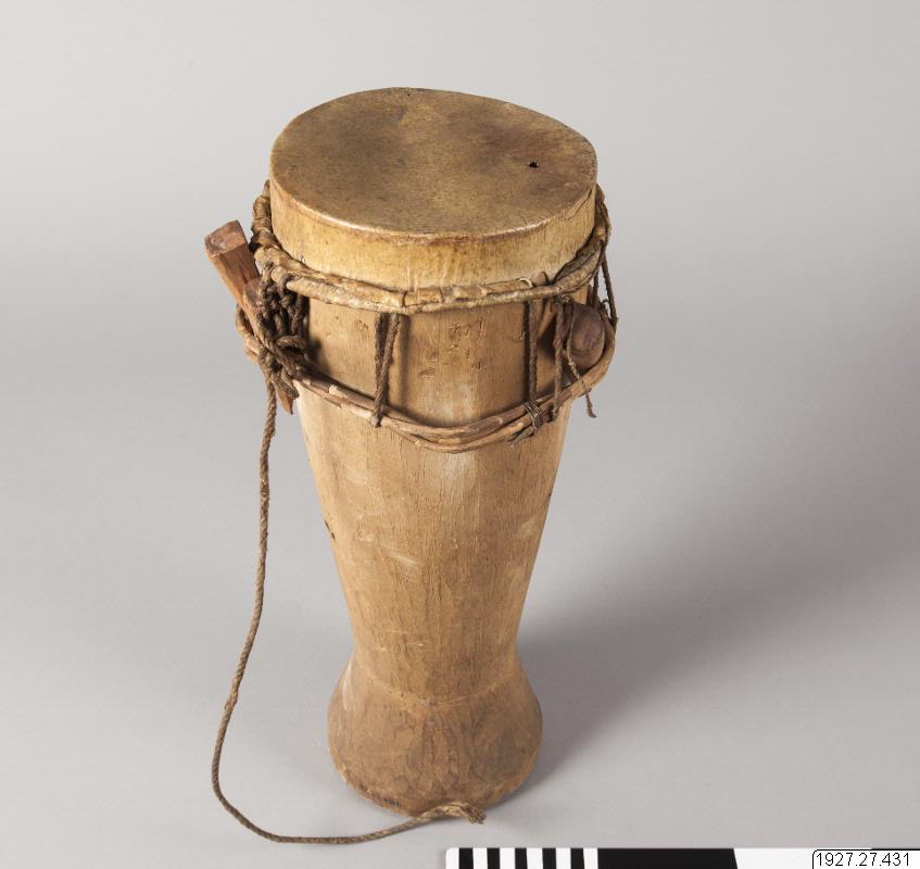 Trumma. Namnet "tambora" anger att indianerna fått detta slags trumma från de vita.