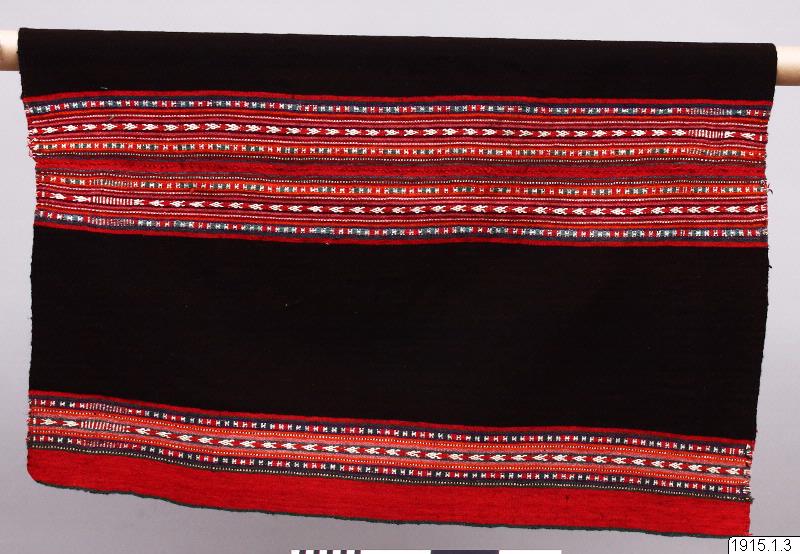 Mönster: 6 st varpmönstrade ränder på varje vävdel.