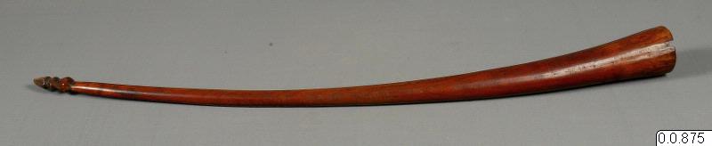 Är inte en lur utan en "vissla". (5/9 1957.) Den öppna ändan sättes mot hakan och anblåsningen sker mot det triangulära jacket. (katalogkort/originalbeskrivning)