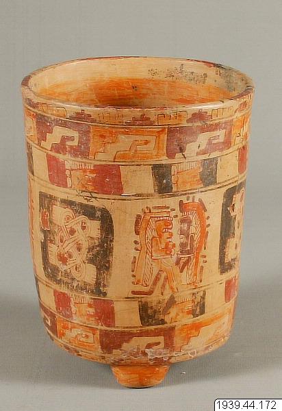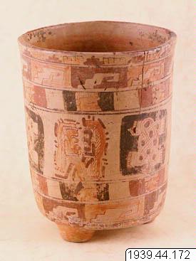 Polykrom keramik. Färg partiellt avskavd. Skålsida: 11 cm lång spricka som delar upp sig i en ca 15 cm lång coh en mindre, en keramikbit skanas intill sprickan kratern efter den har limrester. Ifyllning intill 15 cm sprickan.