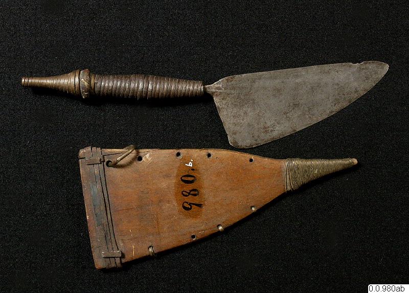 Rakknif. (Möller at al. fig a s.139). Mässing- och järnlindning på skaftet. Gåva.