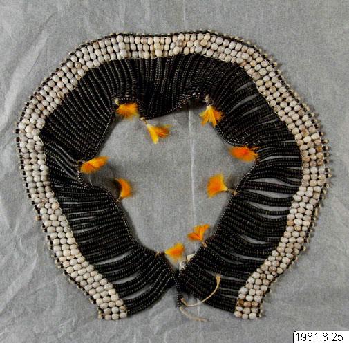 Cermoniell gördel av frön och tukanfjädrar. Tillverkas av kvinnor.