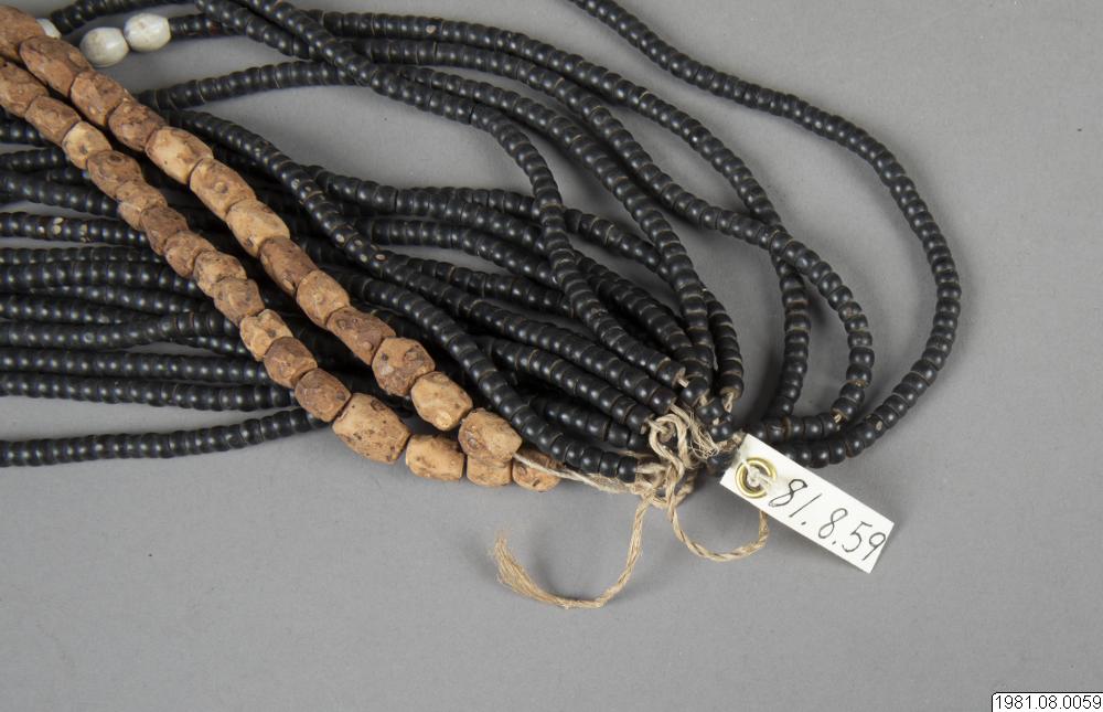 Gördel av välluktande frön med hängprydnad av frön. Cermoniellt bruk. Tillvekas och bäres av kvinnor.