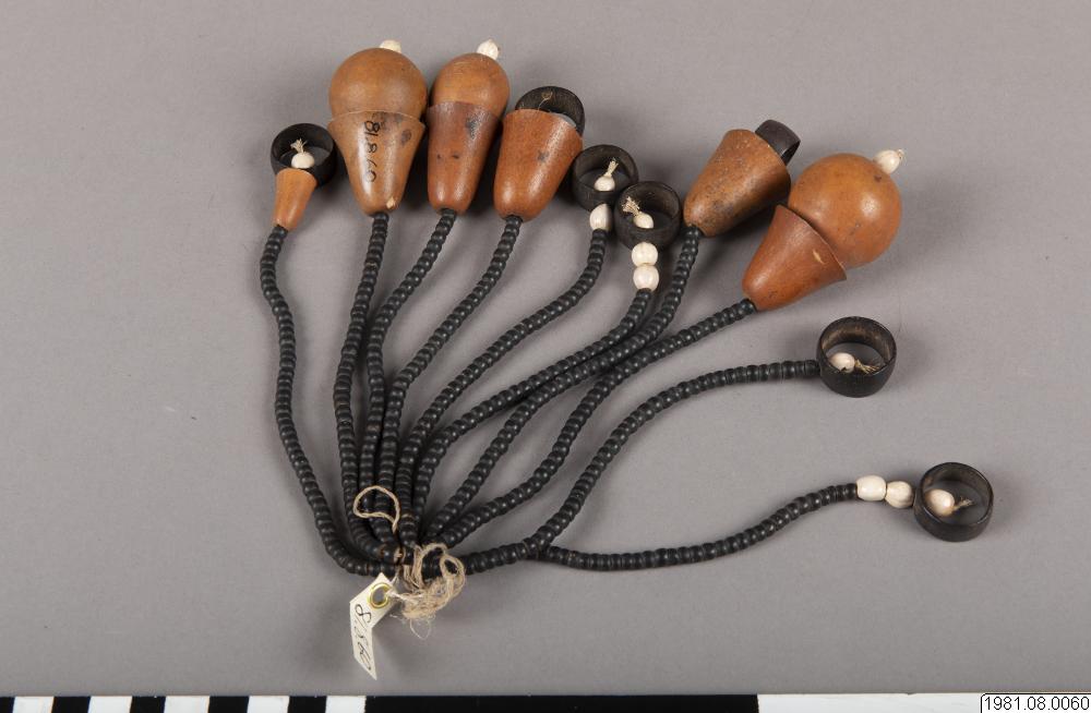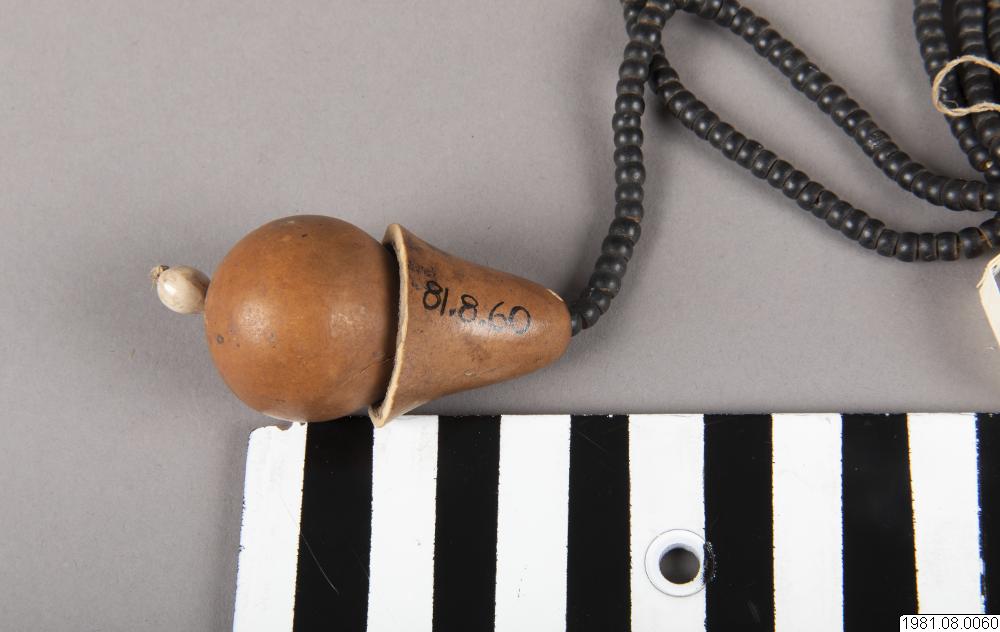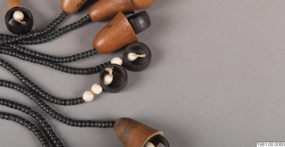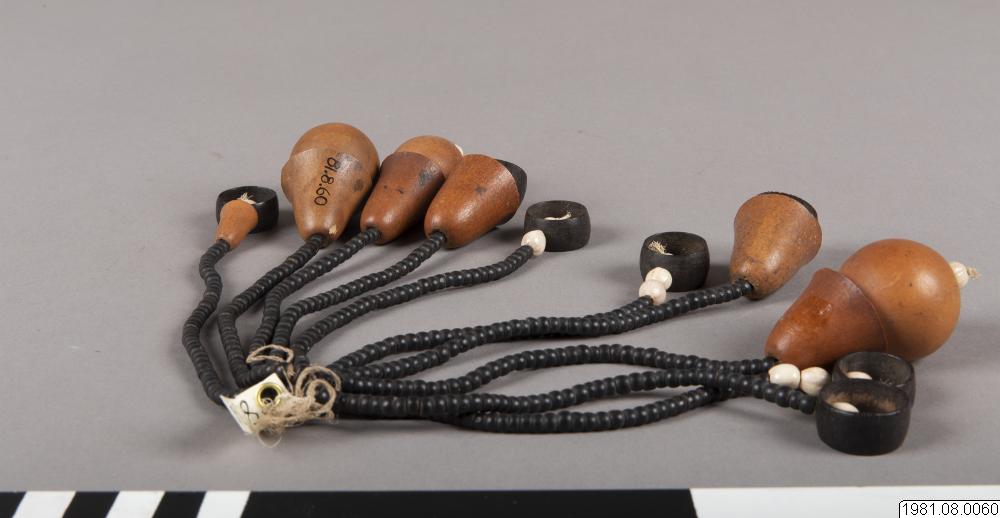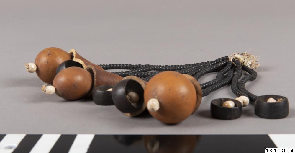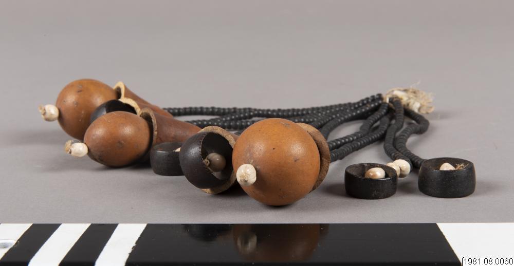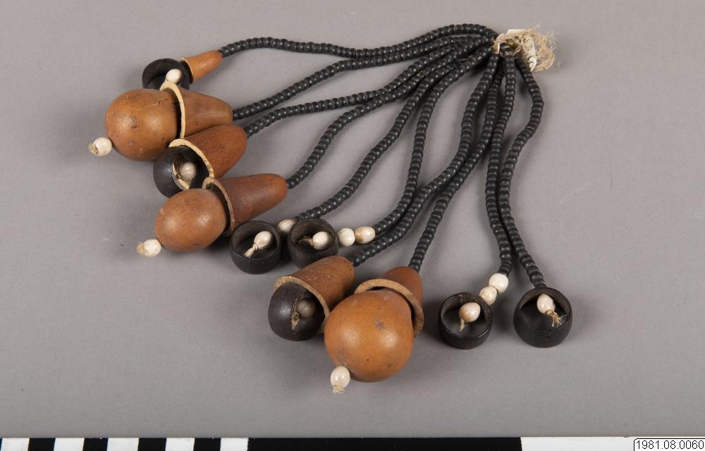 Hängprydnad av frön och små kalbasser för dans. Bäres av kvinnor och fästes vid en gördel.