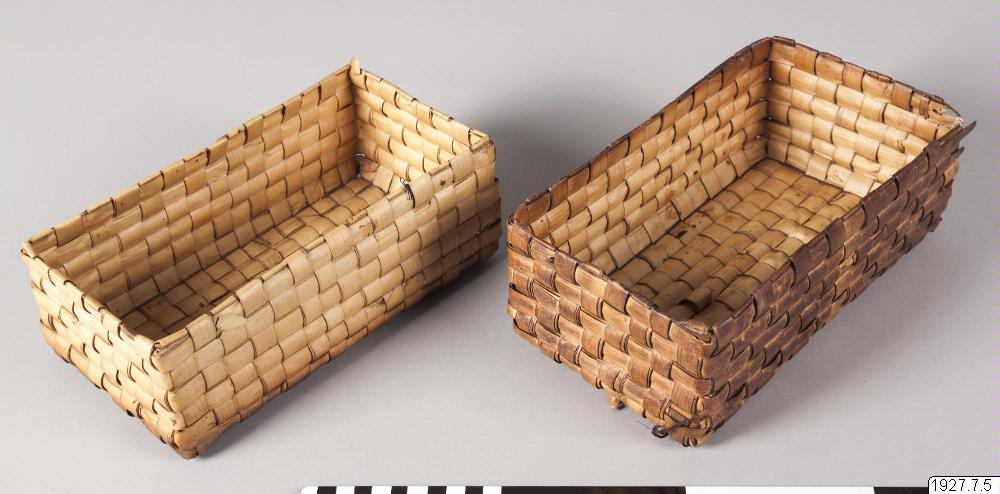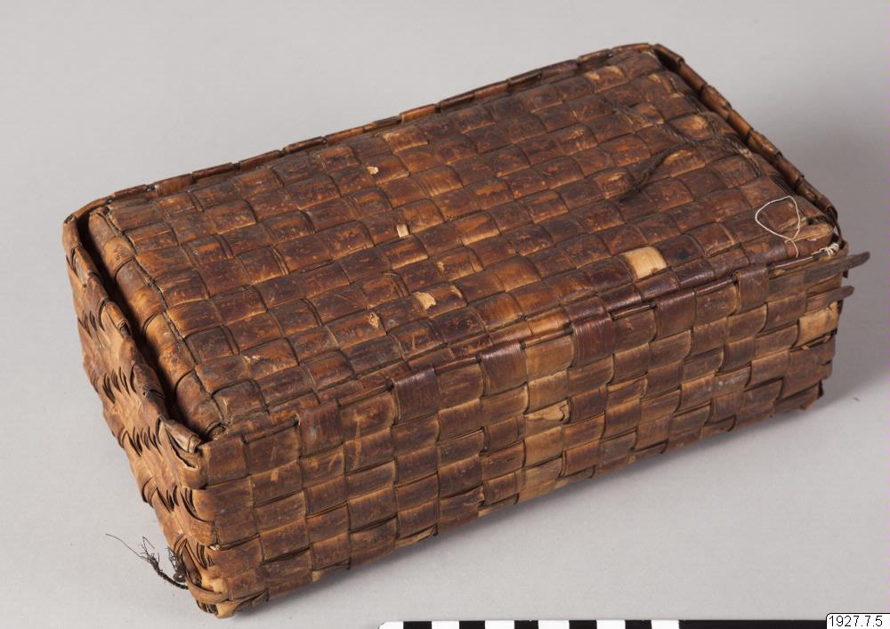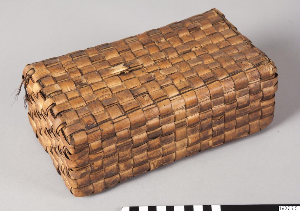 - Korg med lock, schackbrädsmönster. (katalogkort/originalbeskrivning)