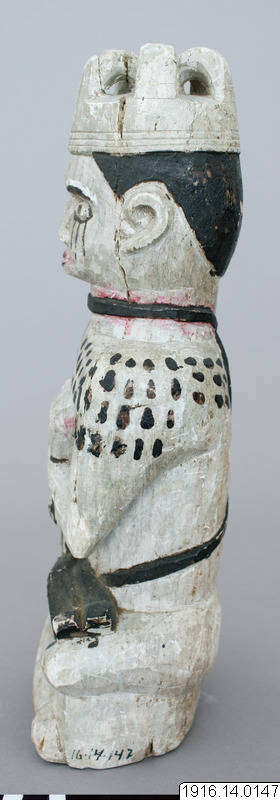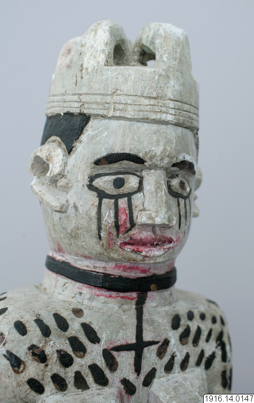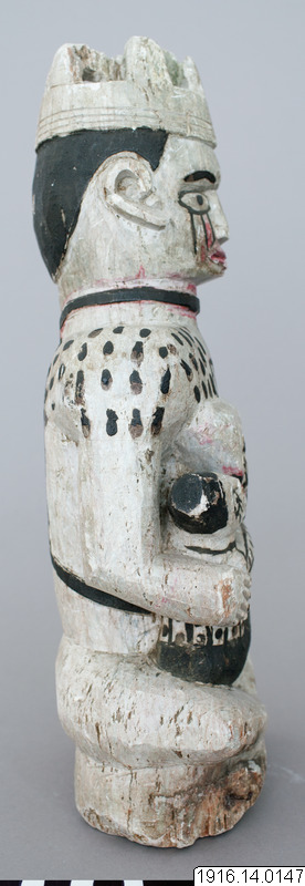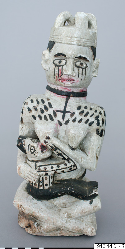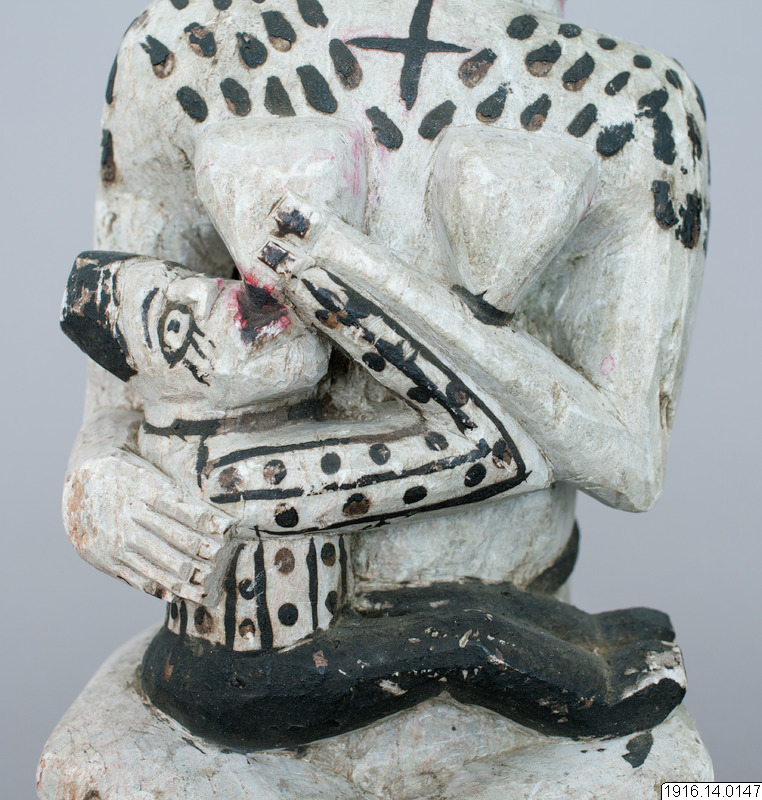 Gravskulptur (ntadi) i täljsten, tillverkad runt sekelskiftet 1900. Den här skulpturen var ett gravmonument för en mycket viktig person, en hyllning till en anmoder för en hel klan. Den förmedlar en önskan att den avlidna ska fungera som en länk mellan de levande och den livgivande kraften i de dödas land, Mpemba.