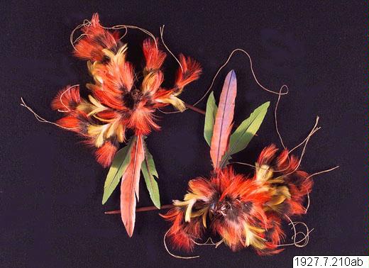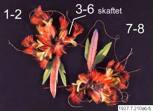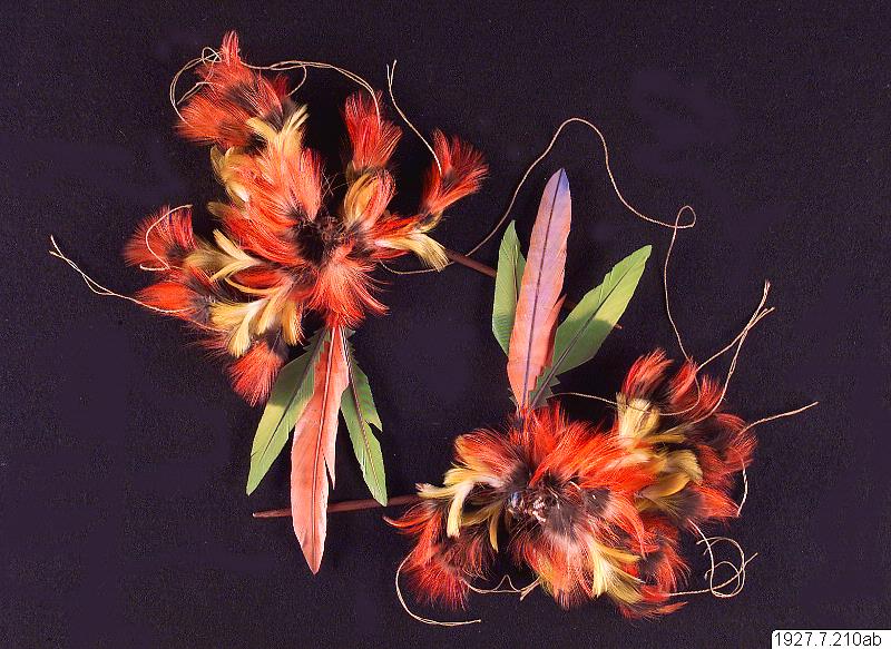 - Kindprydnad för män, av fjädrar. (katalogkort/originalbeskrivning)