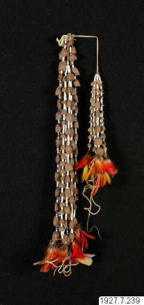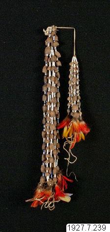- Bunt av fruktskal och pärlor med fjädrar fästade vid ändarna. Fästes vid kvinnornas förkläden för att giva extra ljud vid dansen.