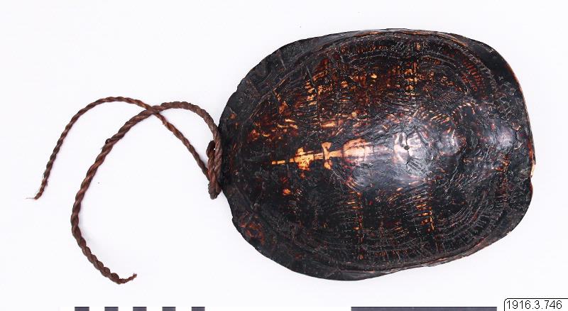Sköldpaddskal, kónngod. Att spela på när majsen till den stora dansfesten sås. Gnides mot handens insida.