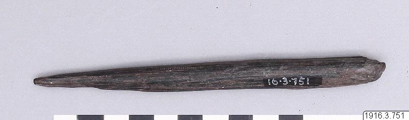 - Pinne för att raspa över trådarna med så att de ej skola trassla sig ("goíne"). (katalogkort/originalbeskrivning)