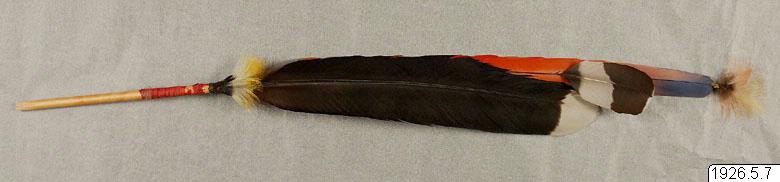 Fjäderstav, öronprydnad. Då den ej användes förvaras fjädrarna löstagna.