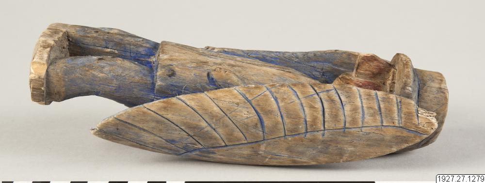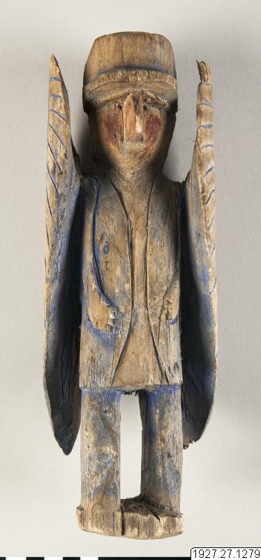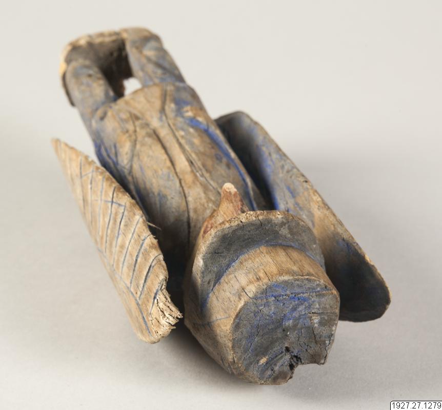 Träfigur som varit andebostad. Anm.av R. Pérez K. i Gbg. 1931: "Suarmimmi", fetiche con alas. Para buscar el alma perdida (véase el no.1288).
