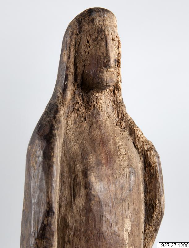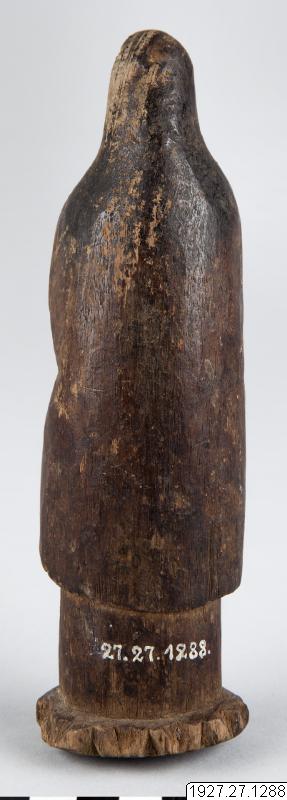 Under figuren på bilden: Fig. 7. Wooden figure. Ustúpu. G.M.27.27. 1288 1/3 (katalogkort/originalbeskrivning)