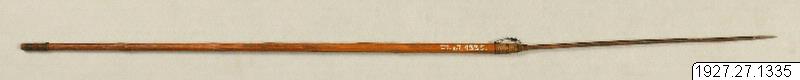 Anm. av Pérez Kantule i Gbg. 1931: "Flechita, siku, que usan los blancos o blancas en tiempo de eclipse de la luna o del sol. Según dicen que el eclipse es la causa de la devorada de la luna ó sol por el dragón ó una rana enorme.Y para ahuyentarlos los blancos tiran esas flechitas a la direccion del eclipse y así el eclipse se desaperece. Es construido por unos indios que saben hacer flechas. Usan solo los blancos y blancas. Así todos los blancos posen estas clases de flechitas, pero ahora por la entrada de cambio de costumbres algunos dejaron de usarlas". (katalogkort/originalbeskrivning)