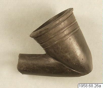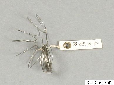 - En keramikpipa (söndrig) med stålspiral. Storlek: pipans höjd 5 cm, spiralens längd 9 cm.
