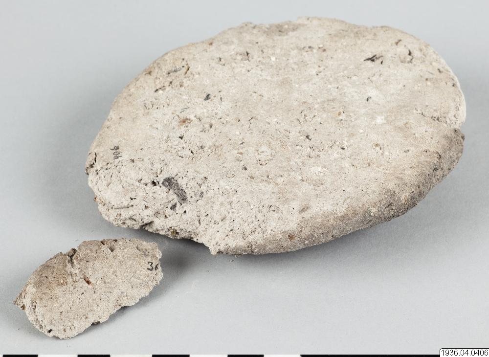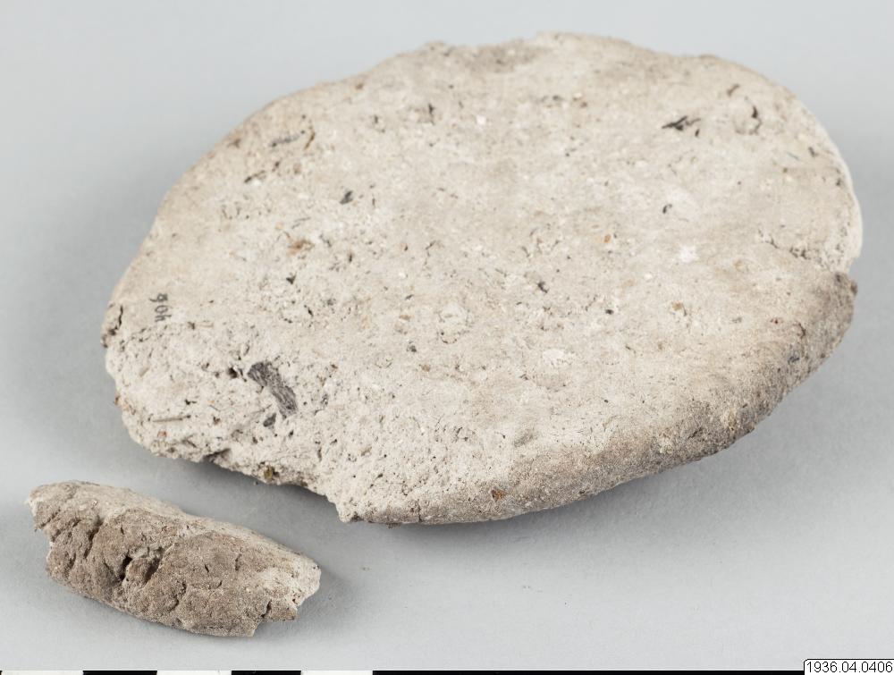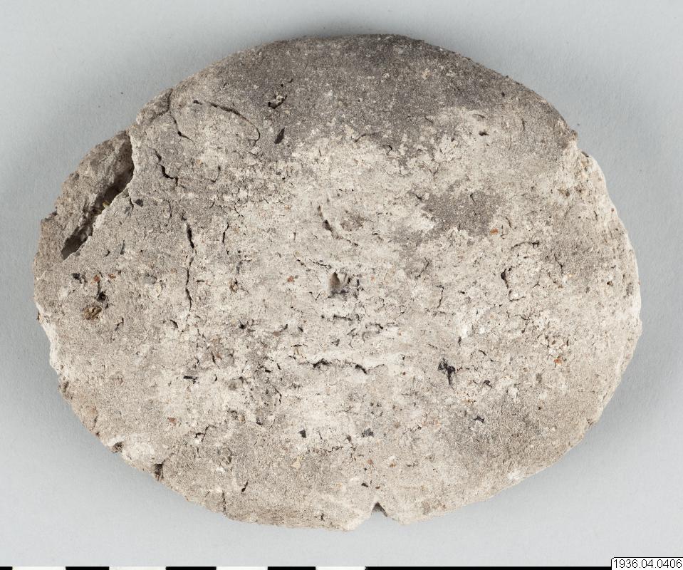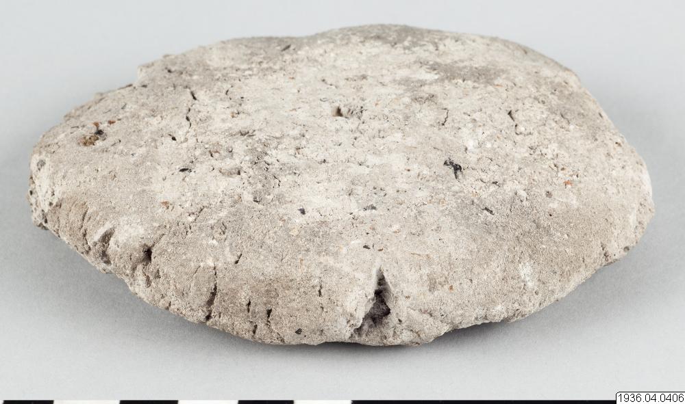 Rund gråsvart centimetertjock kaka av okänt material. Användes då man berusar sig med snusning.