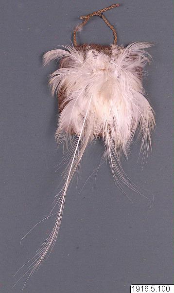 - Ryggprydnad av ett stycke hägerskinn fästat på basttyg.