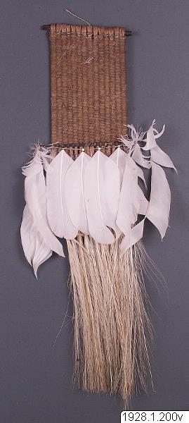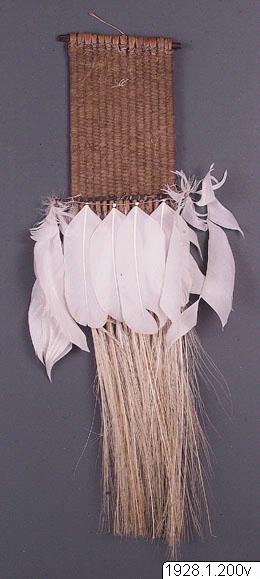 - Fjäderprydnad av häger vilken bäres som nackprydnad. (katalogkort/originalbeskrivning)