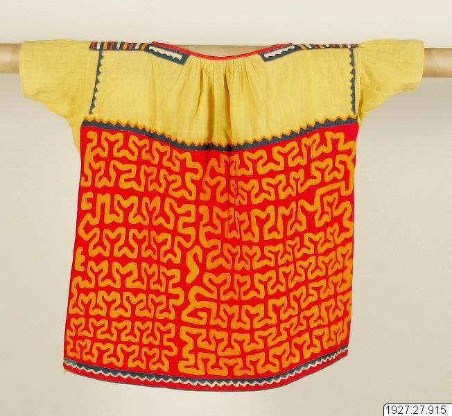 Kvinnoskjorta (mola) med ornament föreställande "suganana", en krabba.