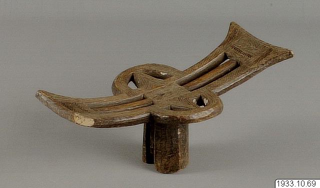 - Back-rest, probably from Yaelima tribe jsut to the north-west of the Bushongo, but also found amon the Kundu-Mongo tribes. W.B.Fagg. 12.9.57.