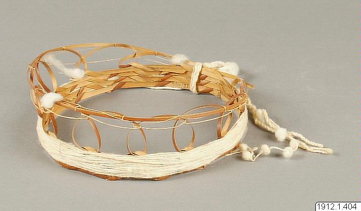 - Huvudbonad av flätverk. (katalogkort/originalbeskrivning)