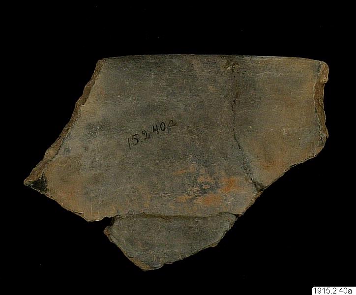 - Kantfragment av lerkärl med på utsidan målad dekor. (katalogkort/originalbeskrivning)
